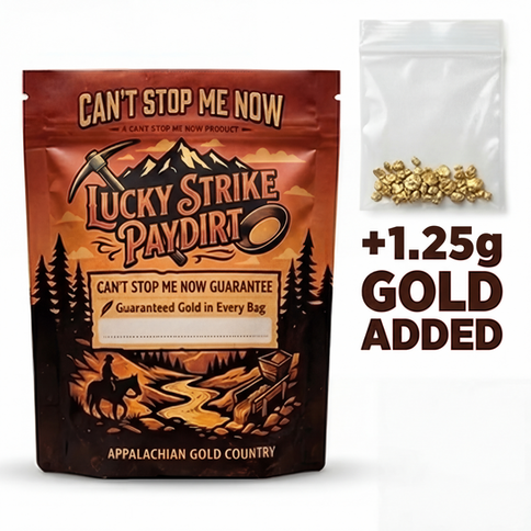 Lucky Strike Paydirt begins with real gold-bearing ground sourced from the Lucky Strike Mine, part of the historic Carolina Gold Belt, where prospectors have pulled gold from the earth for generations. This dirt reflects the same natural material found throughout the region — black sands, heavies, and placer-bearing ground shaped by time and water.